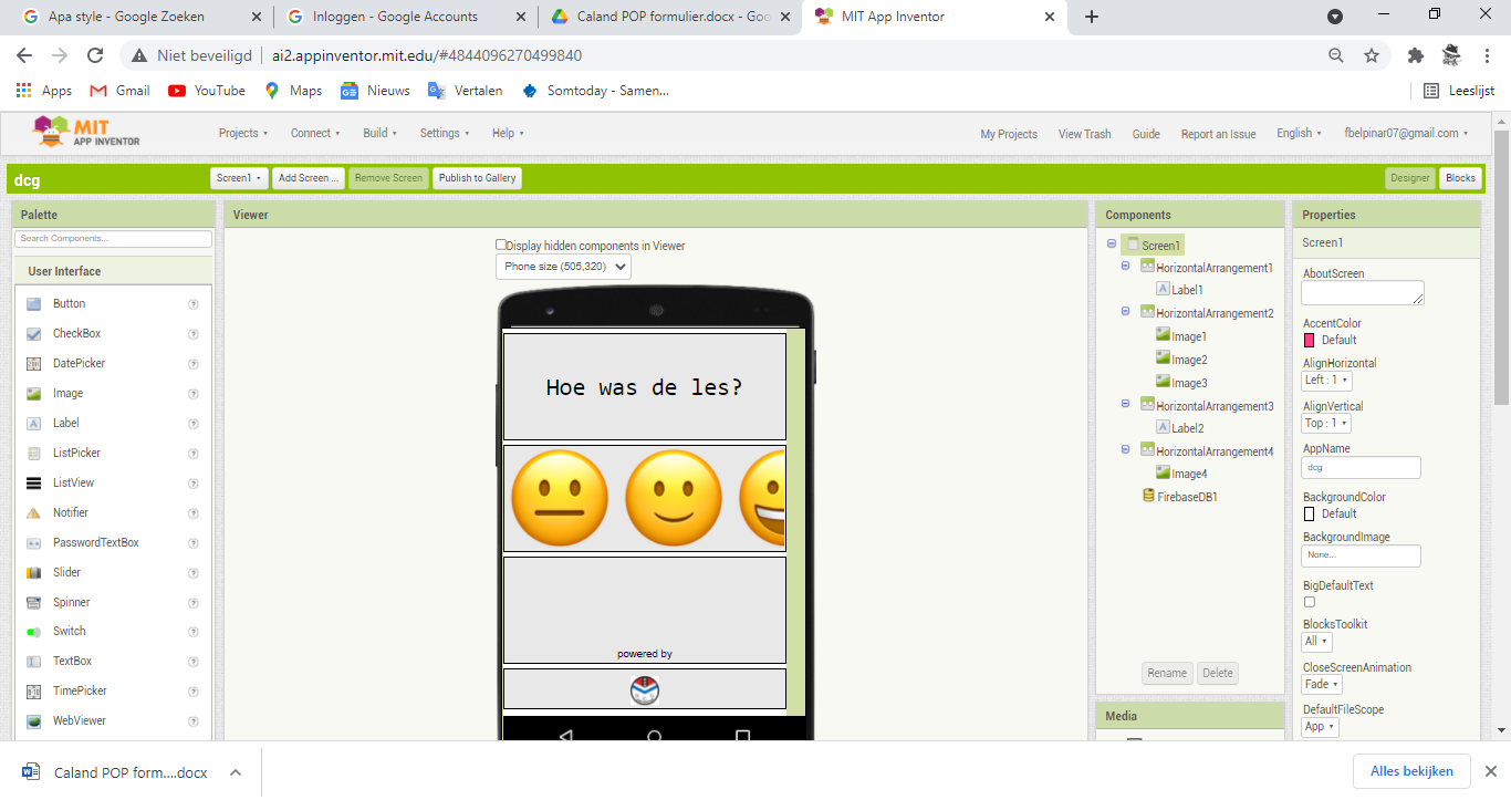 MIT app inventor : hierop is de app gemaakt en gecodeerd.